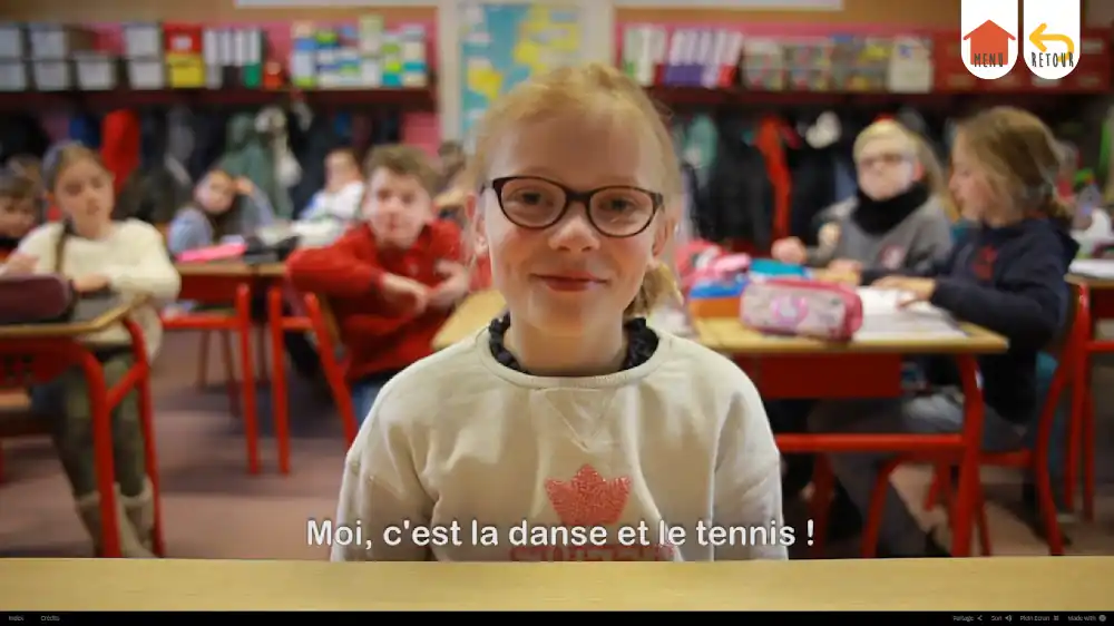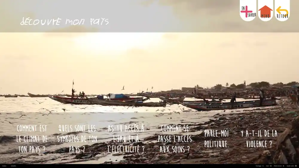 Nos web-documentaires proposent un menu interactif à travers lequel les enfants peuvent choisir les thèmes puis les questions de leur choix. Et aussitôt, un enfant de l’autre pays apparaît à l’écran pour y répondre. Une manière simple et ludique de découvrir les enfants du monde, et de les entendre nous parler de leur quotidien. Chacun découvrira les différences... mais aussi les ressemblances ! Ces outils contiennent également des informations complémentaires pour aller toujours plus loin dans la découverte. Selon les études, plus la diversité est expérimentée à un jeune âge, plus le risque de racisme diminue. Car seul ce que l'on ne connaît pas fait peur. Cet outil est un excellent moyen d'expérimenter le fait que la diversité est une richesse. "Lorsque la différence sera la norme, alors les Hommes vivront en paix." - Citation de Johann Dizant, enseignant Belge né en 1977.